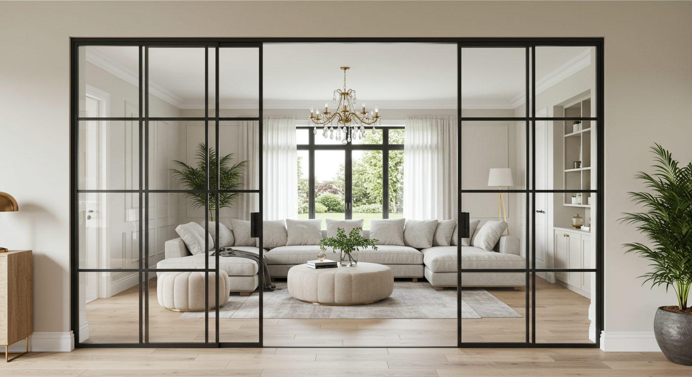 A glass partition helps block noise while letting light pass between spaces. If you want to obscure the view to further separate rooms, consider etched or textured glass.