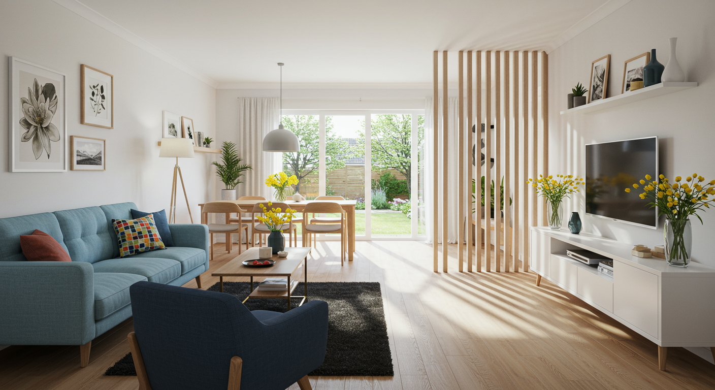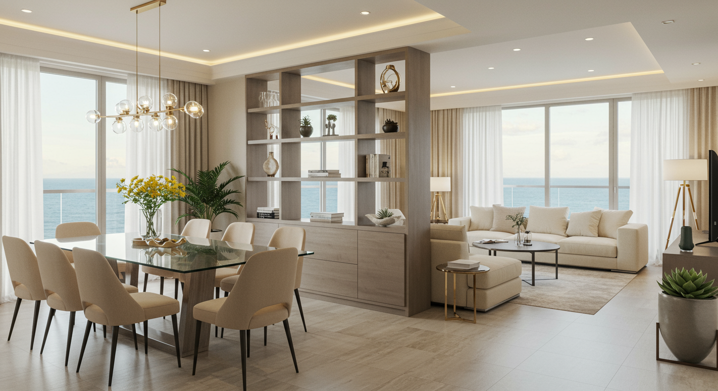 A stylish fixed screen divider is an elegant way to break up a room. It can also add an arty feature to your space. Consider your surrounding design and architectural elements when selecting the pattern, color and material for a fixed screen. You want it to feel intentional, as if the divider was always part of the space rather than an afterthought.