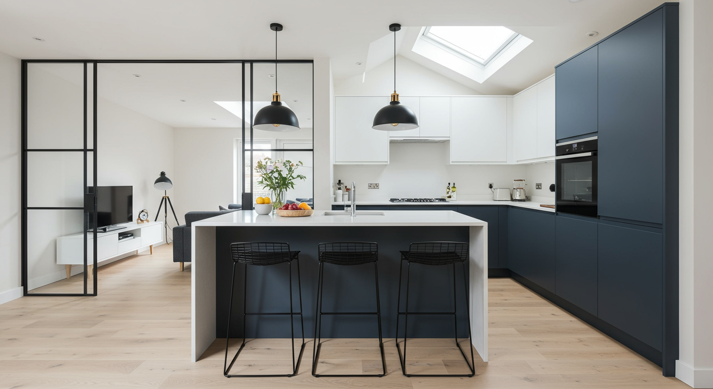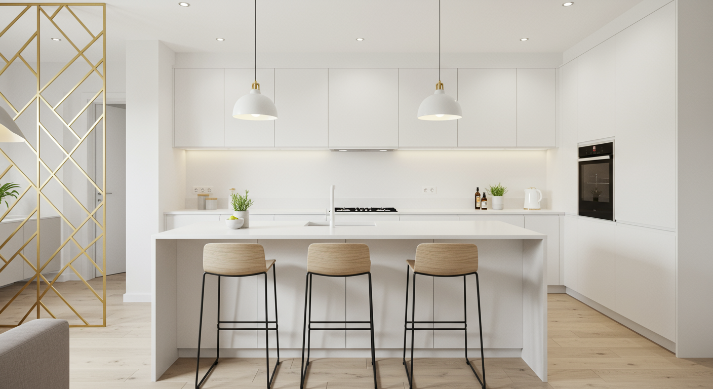 This geometric metal divider pairs beautifully with the clean-lined contemporary kitchen.