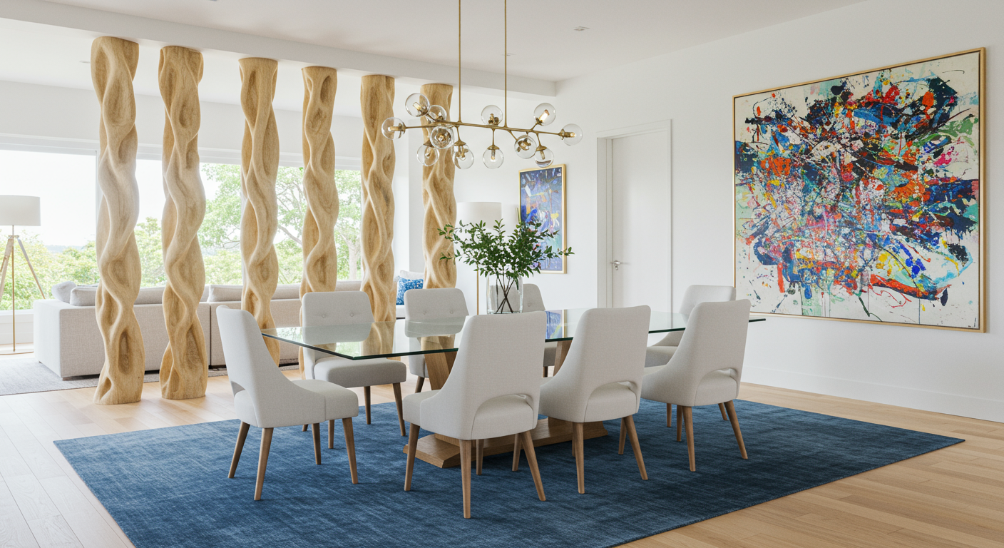 If you lack wall space to hang artwork because of an abundance of windows (not a bad problem to have), consider creating, or hiring an artist to create, an art installation that separates rooms.