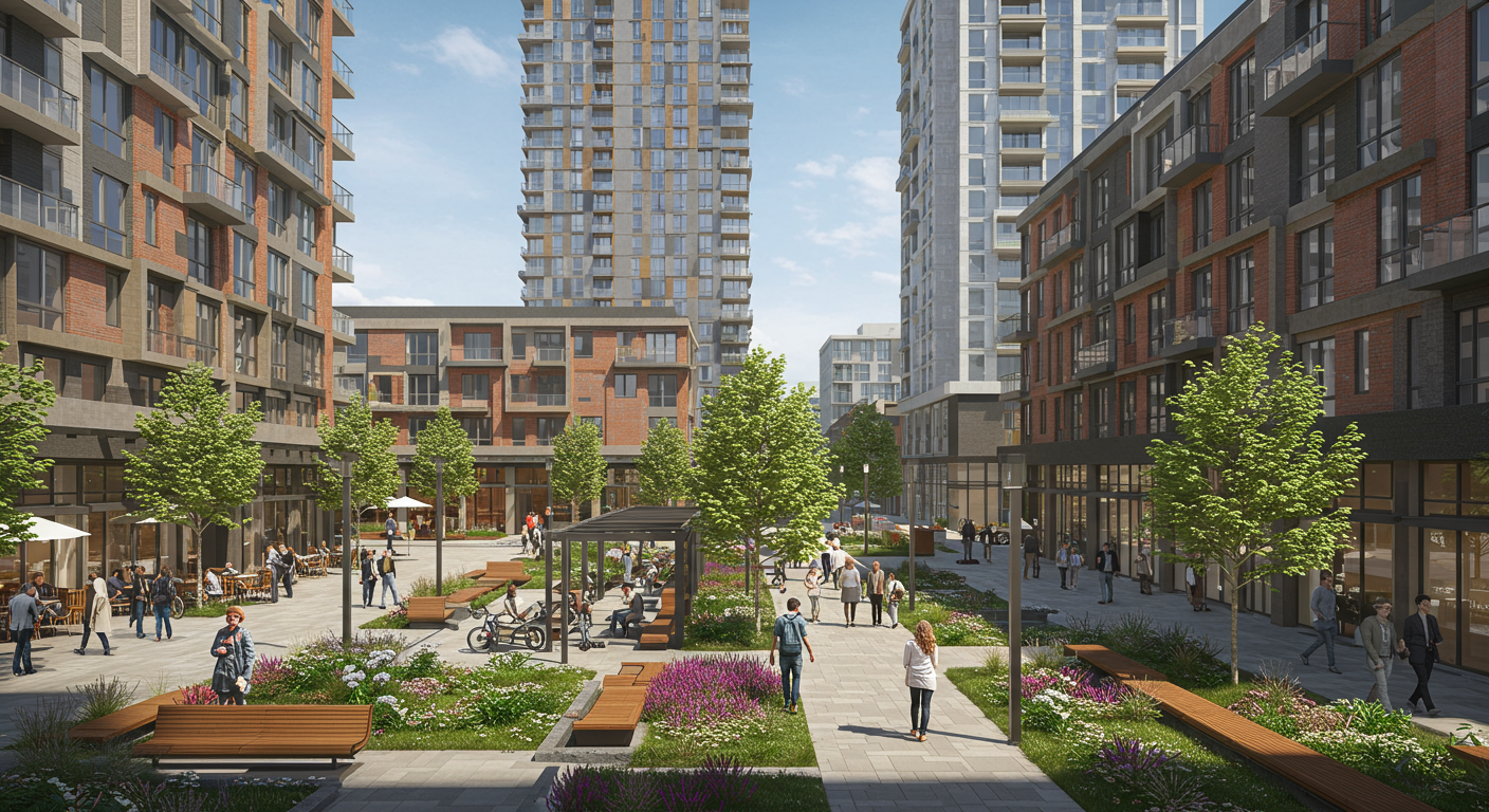 - The project — which is on 9.1 acres at Roxborough, Rexford and Colony roads near the AC Hotel — features two apartment buildings, including one that’ll be up to 15 floors.