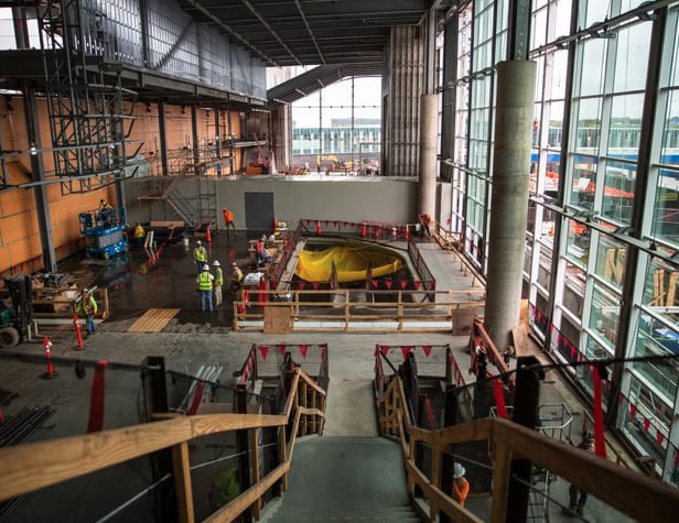 Standing on the mezzanine level of the expanded terminal entry, Jack Christine, the airport’s chief operating officer, raised his voice to compete with the clanging, thumping and whirring of heavy machinery and equipment behind him.