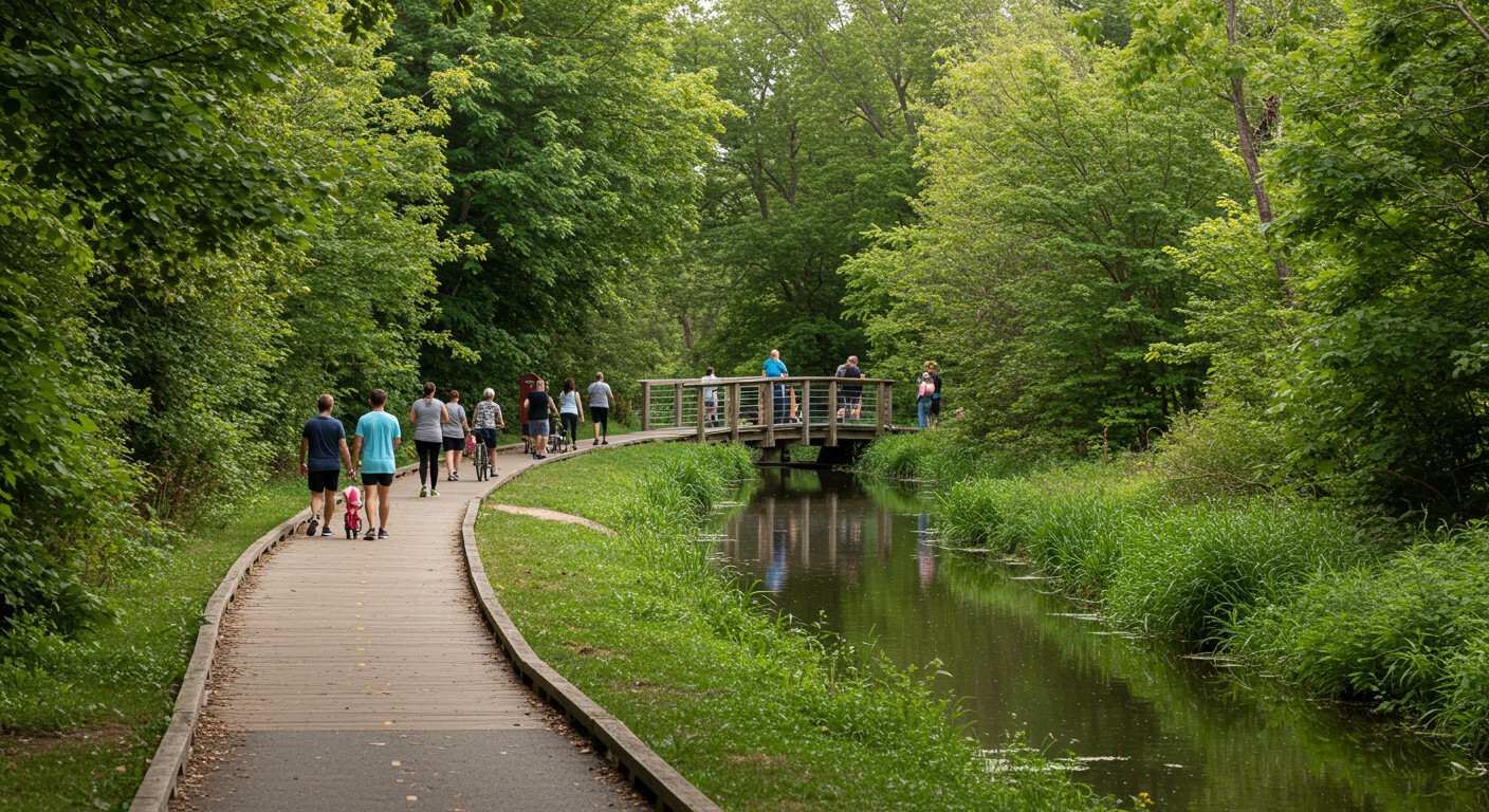 Four Mile Creek Greenway between Johnston Road and Bevington Place trailheads.
