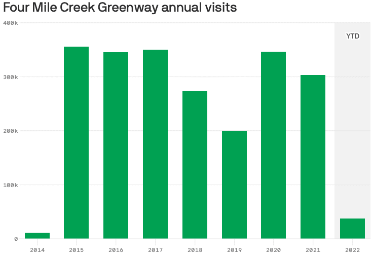 Why it matters: “Greenways continue to be our No. 1 requested amenity within our system anytime we do a large scale survey,” said Bert Lynn, capital planning division director for Mecklenburg County Park and Recreation.